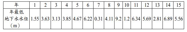 已知我國某地下水分區於沿海一帶過去 15 年的年最低地下水水位(相對平均海平面高程)紀錄如下: |