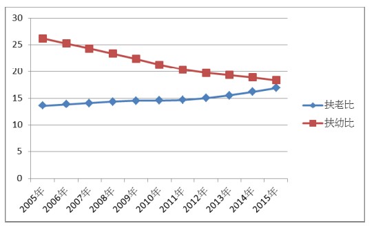 下圖為某國「扶老比」(工作年齡人口扶養老人比率)與「扶幼比」(工作年齡人口扶養幼兒比率)的統計圖。針對圖中數據判斷,該國政府可以採取下列何種政策因應? |